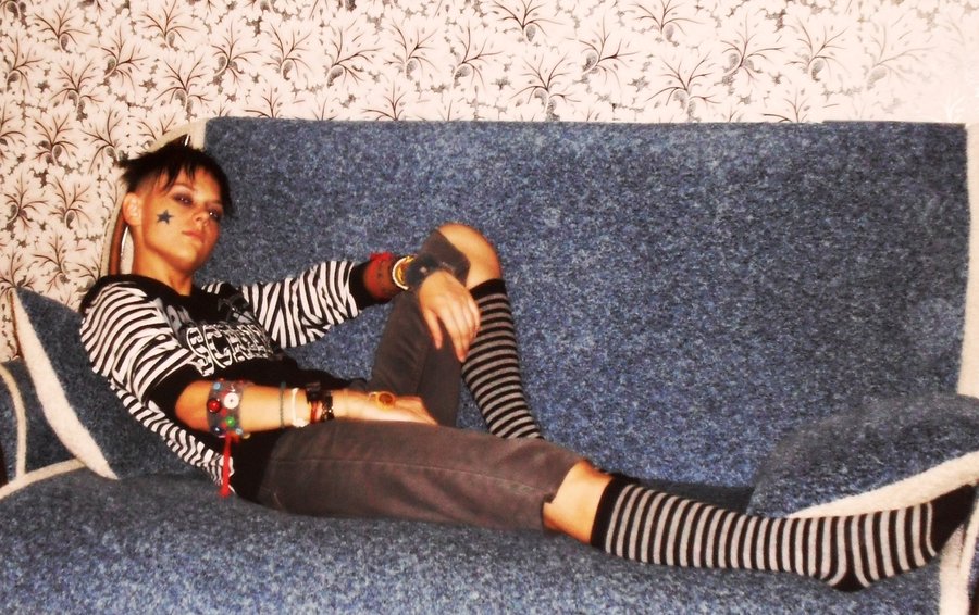 -Awesome cosplay(!) of SWAN!Nny on a couch, chilling with headphones.