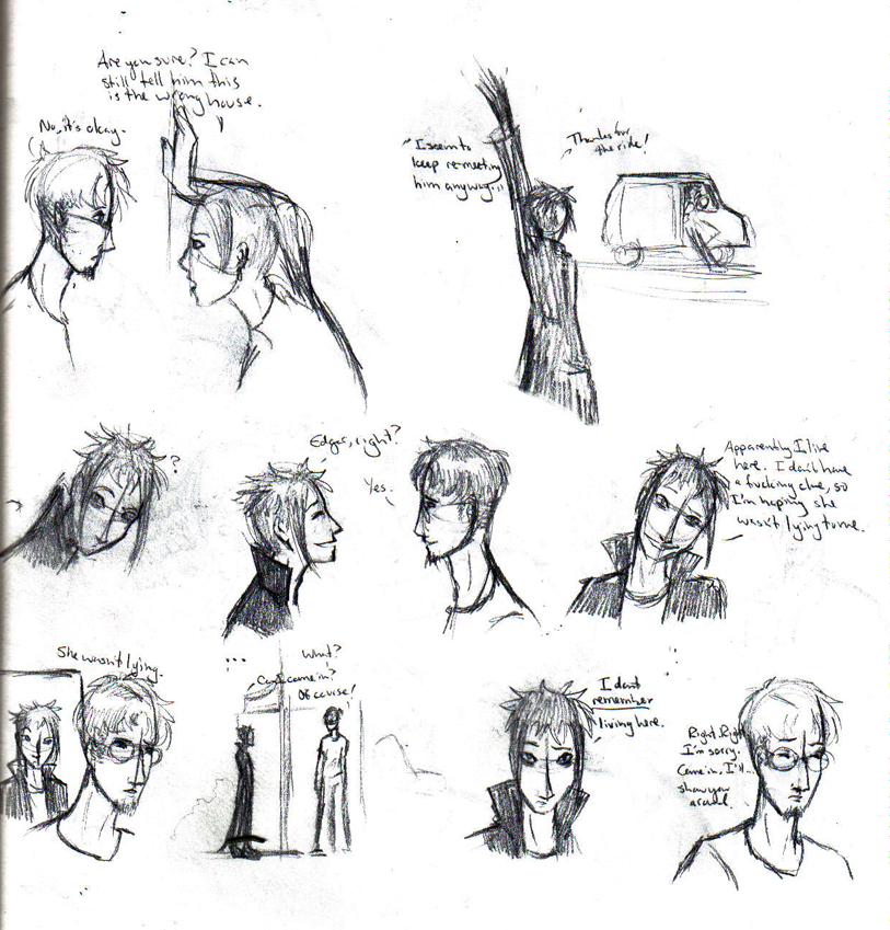 Sketches and things from the SWAN/ISH-verse. They span the whole lifetime of the story, so, like the other sections, they include items from 2005 onward. They are roughly chronological either by where they occur in the story or when I drew them or some weird hybrid of both. This isn't utterly everything, and some things not found here can be seen other places, but this is the bulk of it, and the better stuff, for sure. Now divided by story for ease of access!